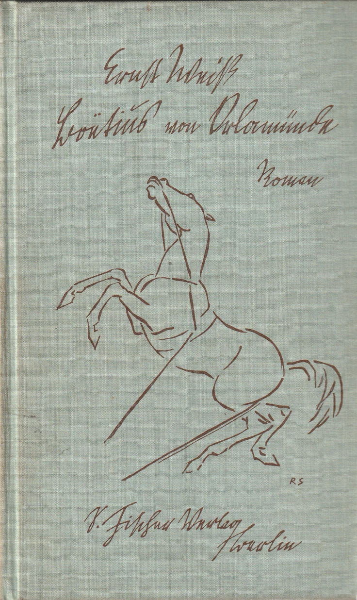 Für die Erstausgabe des „Boetius von Orlamünde“ – die überarbeitete spätere Fassung hieß dann „Der Aristokrat“ – gestaltete E. R. Weiß neben dem Umschlag vor allem auch den Einband, der auf lindgrünem Leinen ein sich aufbäumendes Pferd zeigt. Diese Zeichnung stammt von der Bildhauerin Renée Sintenis (1888-1965), die durch ihre Tierskulpturen bekannt wurde und mit der E. R. Weiß seit 1917 verheiratet war. Die Pferdezeichnung ist sogar mit den Initialen der Künstlerin signiert, was bei Einbänden eher selten ist, die Schreibschrift der Titelei scheint die private Schrift von Weiß nachzuahmen, was andeuten könnte, daß es vielleicht doch eine Bekanntschaft zwischen dem Romanautor und den beiden Künstlern gegeben haben könnte, nur fehlen die beweisenden Dokumente dafür bisher. Eine Verbindung gab es aber in der Tat zwischen dem Schriftsteller und der Bildhauerin, beide wurden nämlich 1928 im Kulturprogramm der Sommer-Olympiade von Amsterdam – so etwas gab es damals noch – ausgezeichnet: Weiß eben für den Roman „Boetius von Orlamünde“ mit einer Silbermedaille, Renée Sintenis mit einem dritten Preis beim Kunstwettbewerb in der Sektion Plastik.